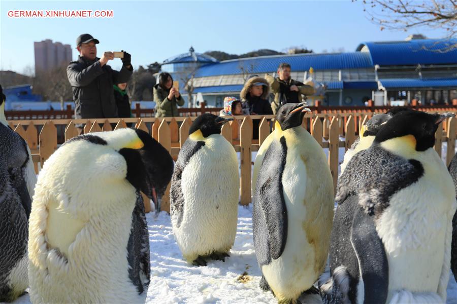 DALIAN, 26. Januar 2016 (Xinhuanet) -- Kaiserpinguine in der Polaren Ozean Welt von Laohutan in Dalian der nordostchinesischen Provinz Liaoning beginnen sich dicke Haare auszuziehen, um den Frühling und Sommer zu begrüßen.(Quelle: Xinhua/Pu Feng)Die Affen sind im Tierweltpark Daqingshan in Hohhot, der Hauptstadt des Autonomen Gebiets Innere Mongolei in China zu sehen, 24. Januar 2016. mehr...