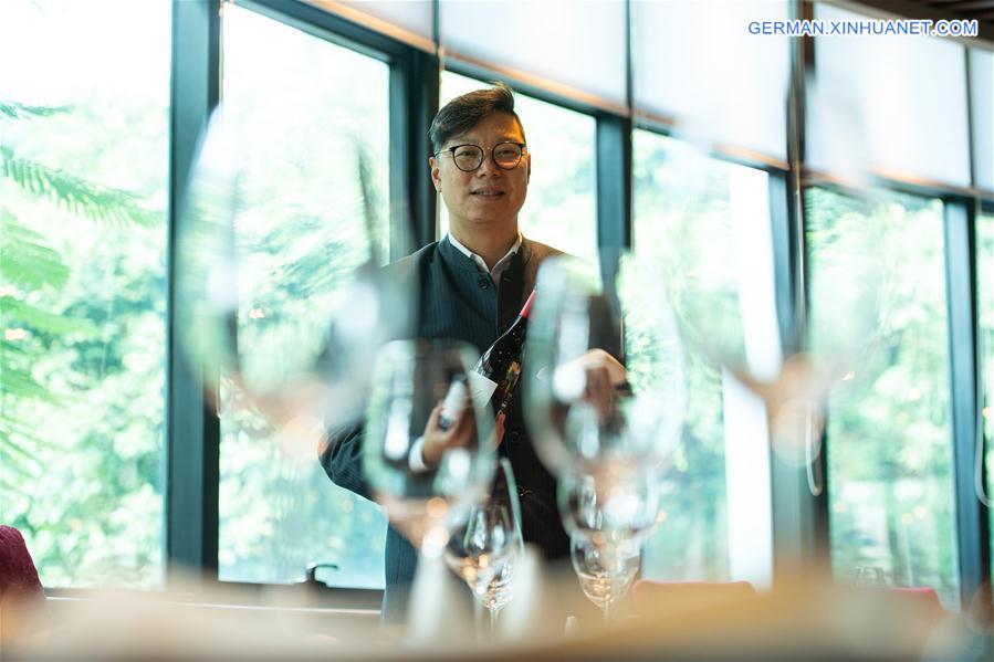 MACAU, 9. Dezember 2019 (Xinhuanet) -- Chang Lat Seng, ein Mitarbeiter des Restaurants für Lehre am Macao Institute for Tourism Studies, der seit 22 Jahren arbeitet, ist im Restaurant im südchinesischen Macau zu sehen, 5. Dezember 2019. Seit seiner Rückkehr zum Mutterland vor 20 Jahren hat Macau große Fortschritte in der wirtschaftlichen Entwicklung gemacht und Wohlstand und Stabilität erreicht. (Quelle: Xinhua/Cheong Kam Ka)