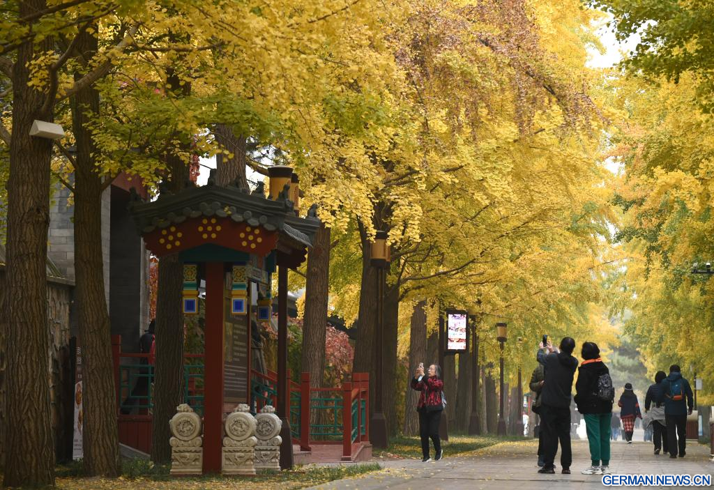 BEIJING, 26. Oktober 2022 (Xinhuanet) -- Menschen genießen die Herbstlandschaft im Yuanmingyuan-Park, oder dem Alten Sommerpalast, in Chinas Hauptstadt Beijing, 26. Oktober 2022. (Quelle: Xinhua/Luo Xiaoguang)