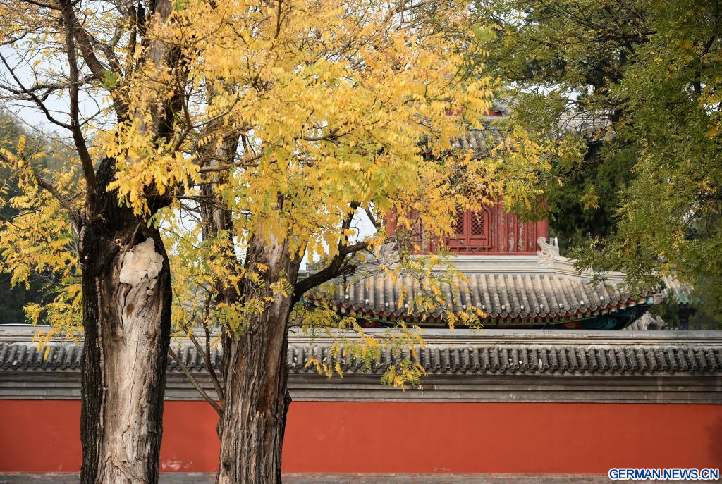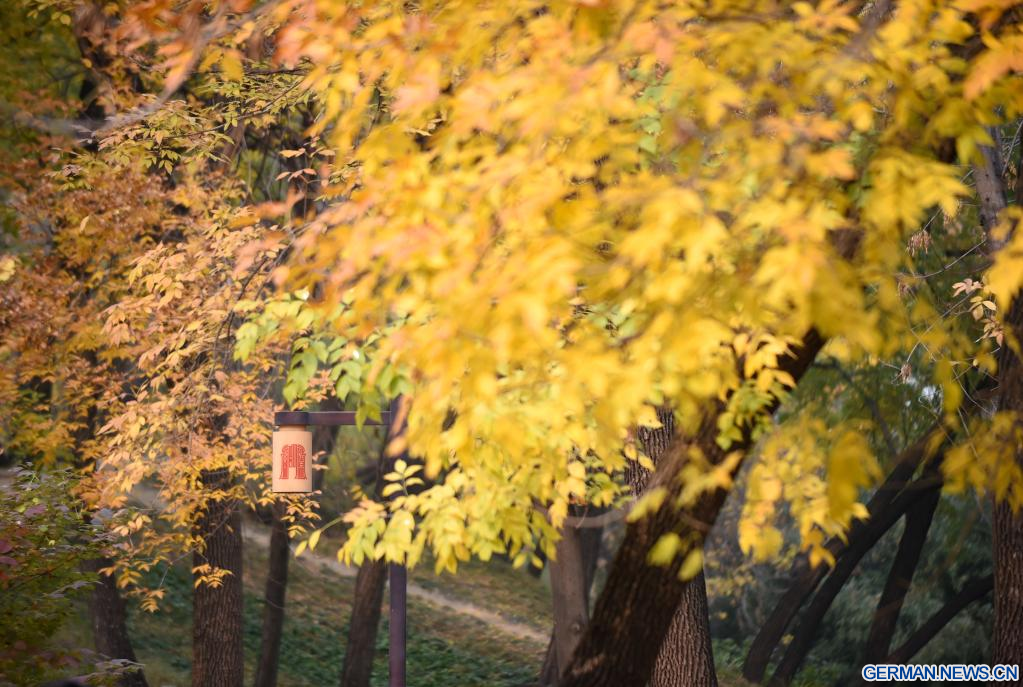 BEIJING, 26. Oktober 2022 (Xinhuanet) -- Das Foto vom 26. Oktober 2022 zeigt die Herbstlandschaft im Yuanmingyuan-Park, oder dem Alten Sommerpalast, in Chinas Hauptstadt Beijing. (Quelle: Xinhua/Luo Xiaoguang)