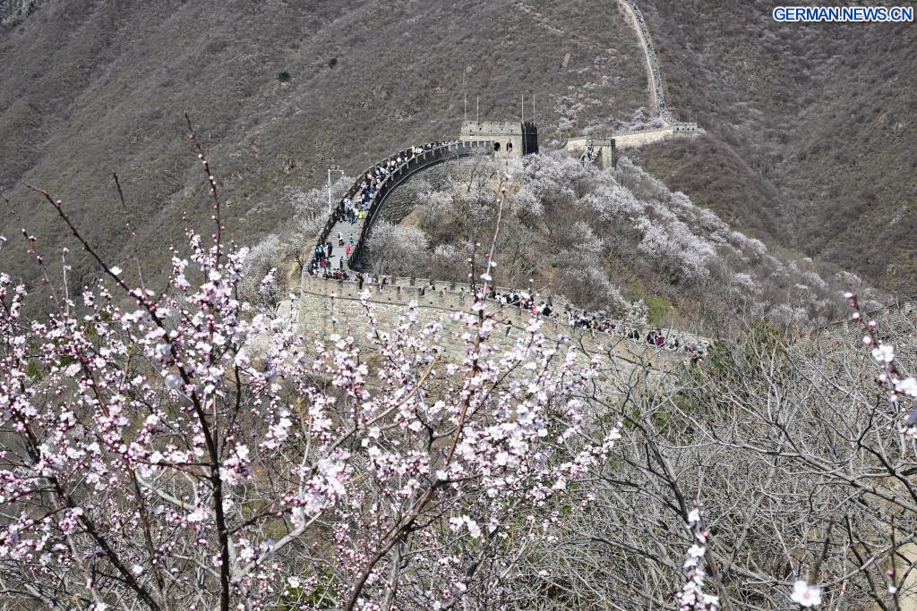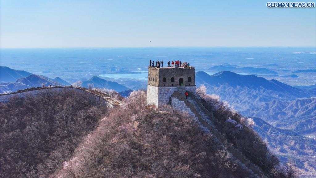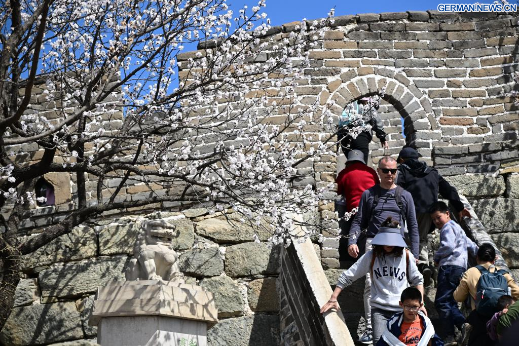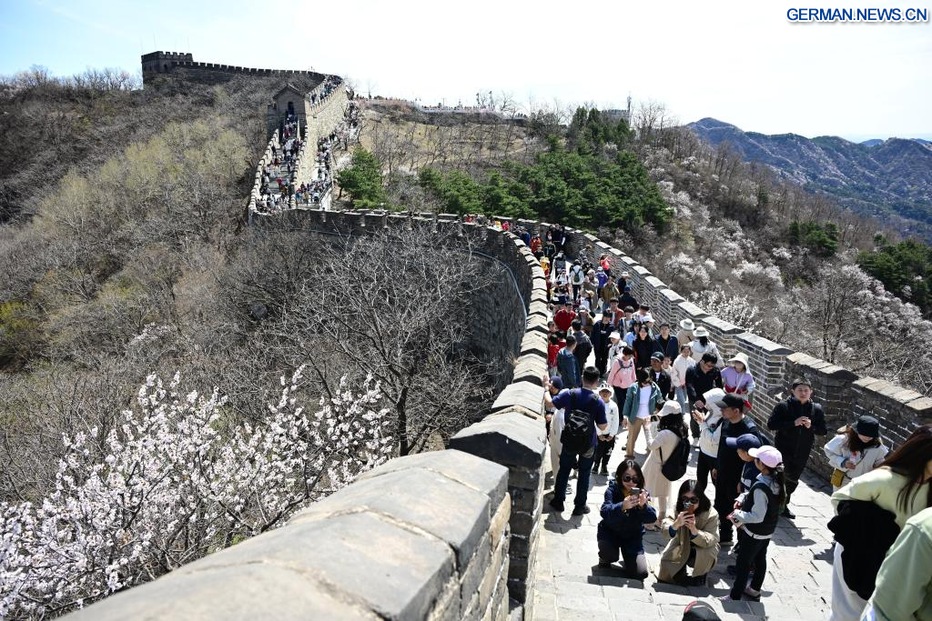 BEIJING, 5. April 2025 (Xinhuanet) -- Menschen besuchen den Mutianyu-Abschnitt der Großen Mauer in Chinas Hauptstadt Beijing, 5. April 2025. (Quelle: Xinhua/Li He)