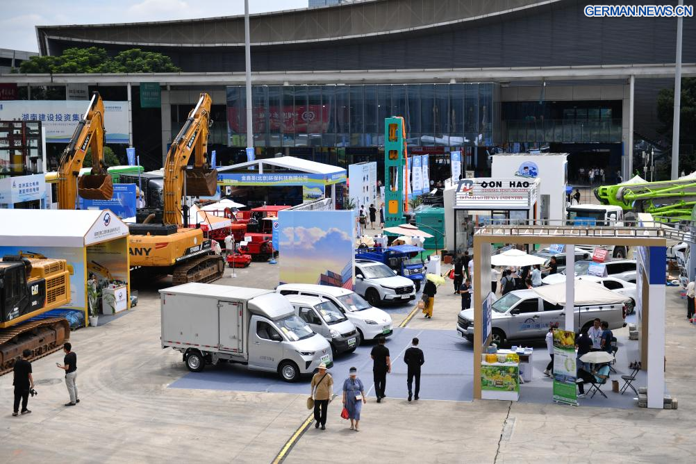 CHANGSHA, 13. Juni 2025 (Xinhuanet) -- Eine Ausstellerin (r.) stellt Besuchern afrikanische Produkte während der vierten China-Afrika-Wirtschafts- und Handelsausstellung im Internationalen Kongress- und Ausstellungszentrum Changsha in Changsha in der zentralchinesischen Provinz Hunan vor, 13. Juni 2025. Die Ausstellung wurde hier am Donnerstag eröffnet und ist vom 13. bis 15. Juni für die Öffentlichkeit zugänglich. (Quelle: Xinhua/Chen Sihan)