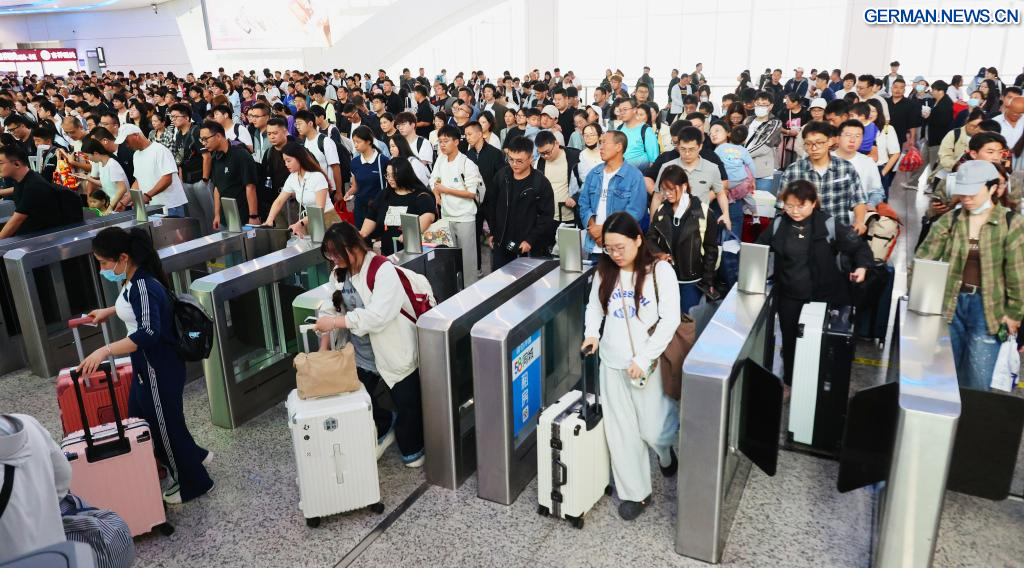 Vom 1. bis 8. Oktober wurden täglich durchschnittlich 304 Millionen interregionale Passagierfahrten unternommen, was einem Anstieg von 6,3 Prozent gegenüber dem Vorjahr entspricht und einen neuen Rekord darstellt. (Foto von Yang Suping/Xinhua)
