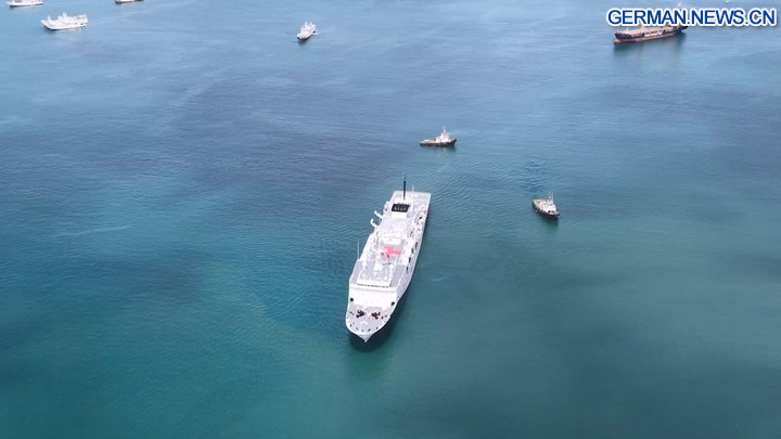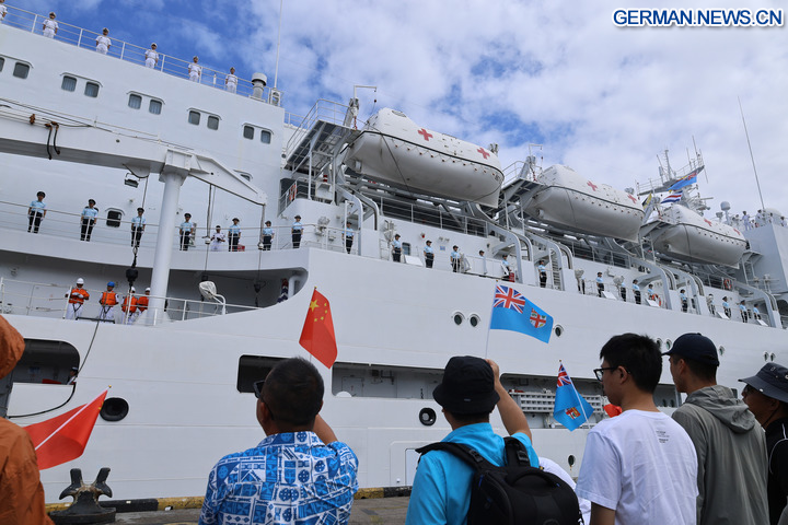 Das Hospitalschiff „Silk Road Ark” der chinesischen Marine, das sich auf der „Mission Harmony-2025” befindet, hat einen siebentägigen Freundschaftsbesuch und humanitären medizinischen Dienst in Fidschi erfolgreich abgeschlossen und ist am Mittwoch nach Tonga aufgebrochen. (Foto von Wang Junchuan/Xinhua)