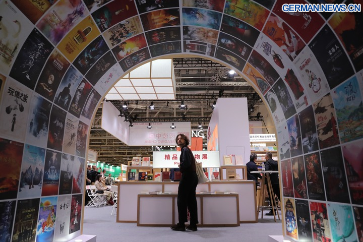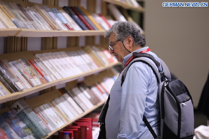 Chinesische Verlage sind auf der Buchmesse stark vertreten und präsentieren mehr als 5.000 Titel und 6.500 Exemplare, wobei fremdsprachige Ausgaben mehr als ein Drittel der Gesamtzahl ausmachen. (Xinhua/Du Zheyu)