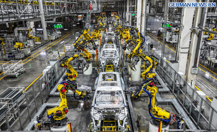 Die Drohnenaufnahme zeigt die automatisierte Produktion in der Seres Super Factory im neuen Stadtteil Liangjiang von Chongqing im Südwesten Chinas, 19. September 2025. (Xinhua/Wang Quanchao)