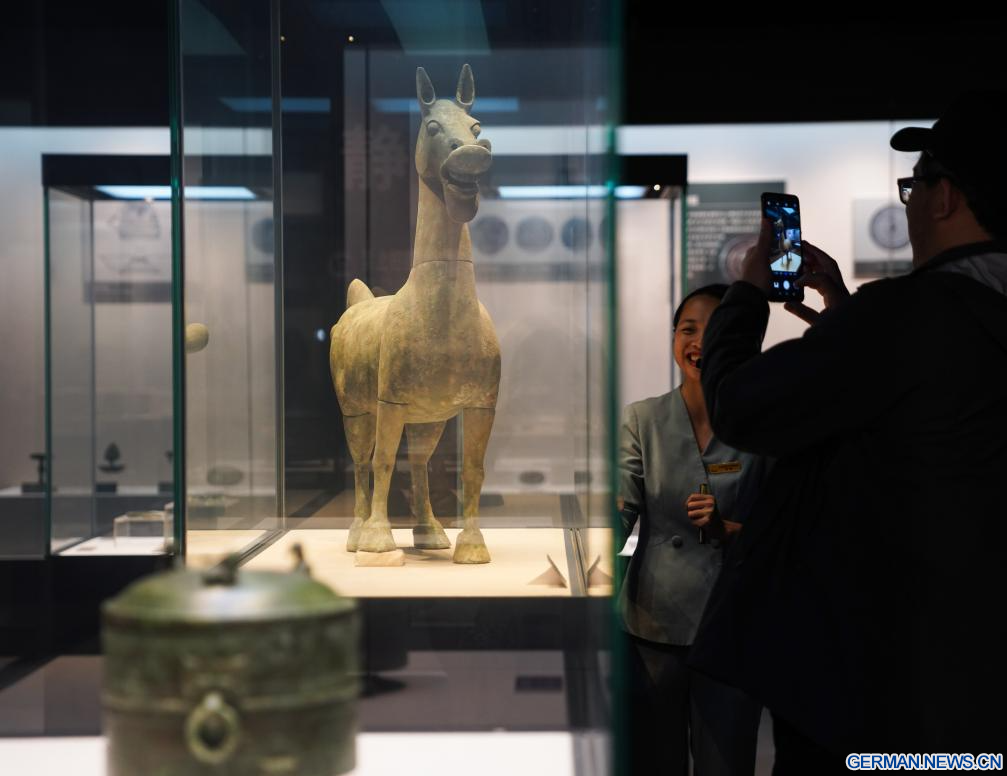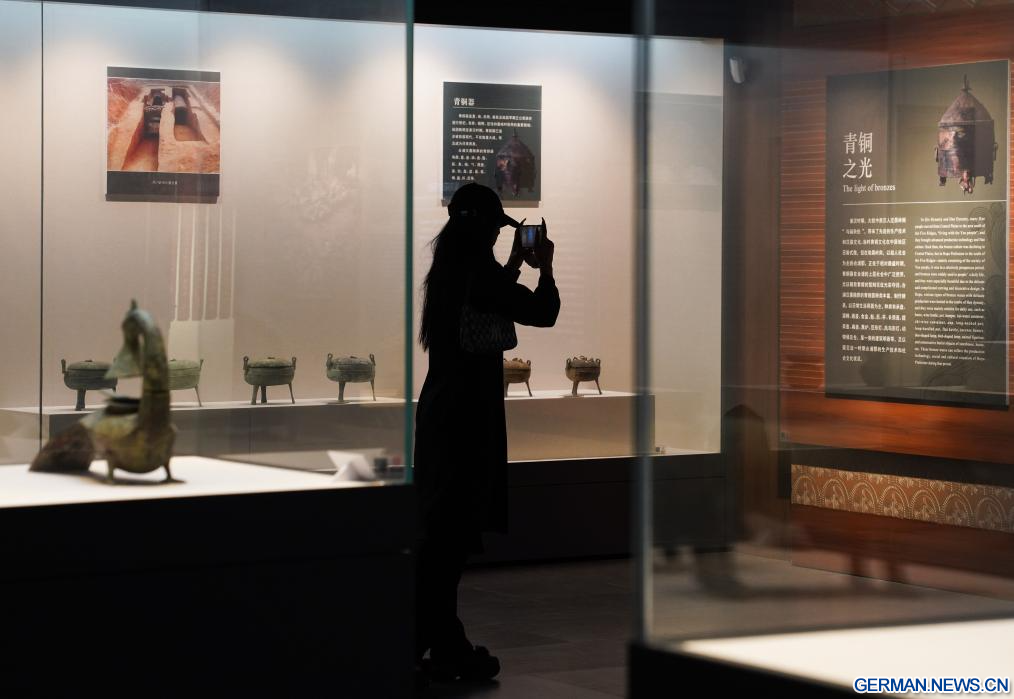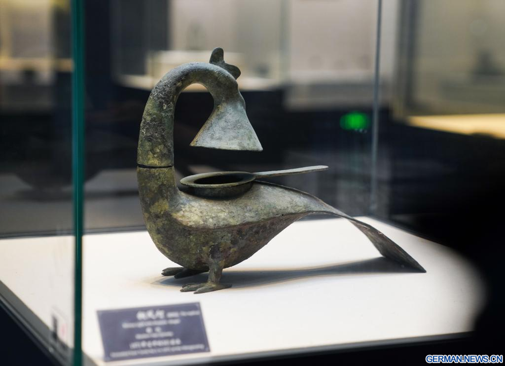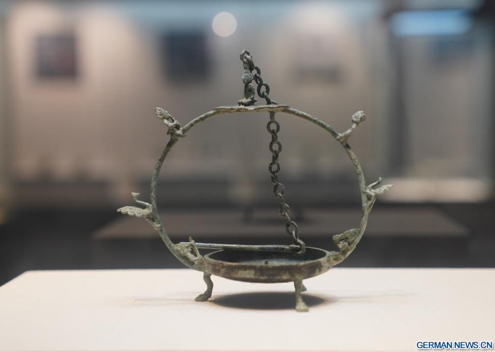 HEPU, 21. Oktober 2025 (Xinhuanet) -- Das am 21. Oktober 2025 aufgenommene Foto zeigt ein Exponat im Han-Kulturmuseum im Kreis Hepu im südchinesischen Autonomen Gebiet Guangxi der Zhuang-Nationalität. Das 1978 gegründete Han-Kulturmuseum des Kreises Hepu konzentriert sich auf die historische und kulturelle Präsentation der maritimen Seidenstraße während der Han-Dynastie (202 v. Chr. – 220 n. Chr.). Das Museum erstreckt sich über eine Fläche von 13.300 Quadratmetern und beherbergt insgesamt 5.208 Stücke und Sets von Kulturrelikten. (Quelle: Xinhua/Zhou Jiayi)