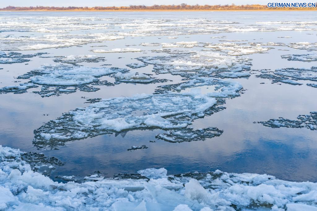 YICHUN, 5. November 2025 (Xinhuanet) -- Das Foto vom 5. November 2025 zeigt den Abschnitt Jiayin des Heilongjiang-Flusses, der mit Treibeis bedeckt ist, in der Stadt Yichun in der nordostchinesischen Provinz Heilongjiang. Mit sinkenden Temperaturen kam es im Abschnitt Jiayin des Heilongjiang-Flusses zu Treibeis. (Quelle: Xinhua/Xie Jianfei)