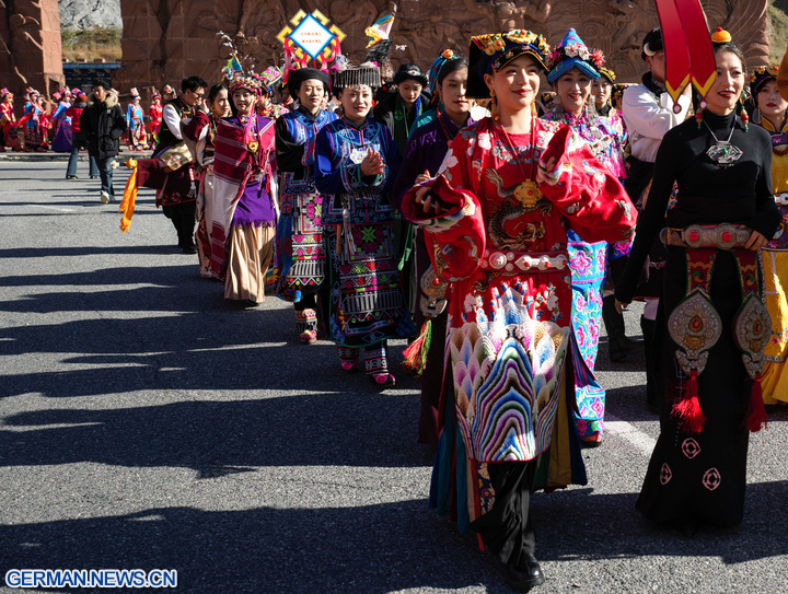 Das Qiang-Neujahrsfest wurde 2024 von der UNESCO in die Repräsentative Liste des Immateriellen Kulturerbes der Menschheit aufgenommen. (Foto von Lan Hongguang/Xinhua)