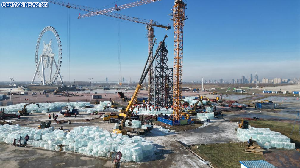 HARBIN, 25. November 2025 (Xinhuanet) -- Das am 25. November 2025 aufgenommene Luftbild einer Drohne zeigt die Baustelle der Harbin Ice-Snow World in Harbin in der nordostchinesischen Provinz Heilongjiang. Die 27. Harbin Ice-Snow World, ein renommiertes saisonales Themenpark in Harbin, hat am Dienstag offiziell mit dem Bau begonnen. (Foto von Liu Yang/Xinhua)