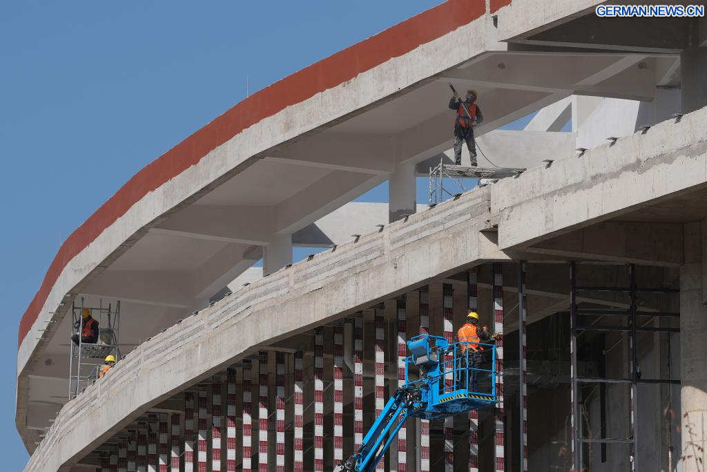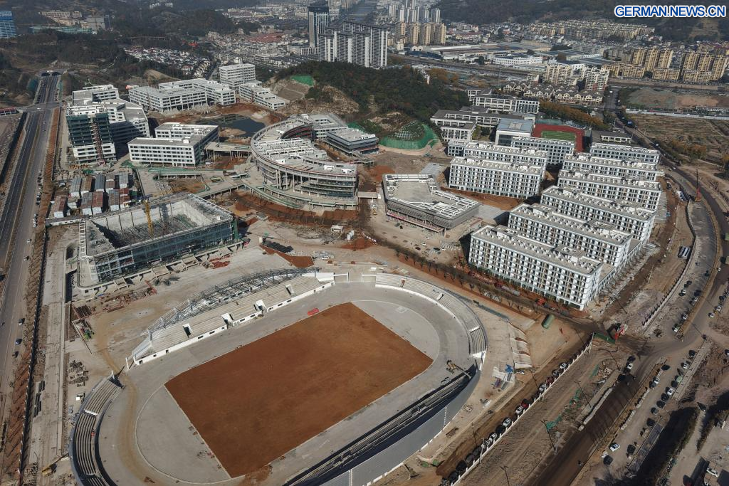 XINCHANG, 27. November 2025 (Xinhuanet) -- Bauarbeiter arbeiten auf der Baustelle des Xinchang College des Zhejiang Industry Polytechnic College im Kreis Xinchang der Stadt Shaoxing in der ostchinesischen Provinz Zhejiang, 26. November 2025. Das Xinchang College des Zhejiang Industry Polytechnic College erstreckt sich über eine Fläche von etwa 600 Mu (ca. 40 Hektar) und ist die erste Hochschule, die derzeit im Kreis Xinchang in Zhejiang gebaut wird. Nach seiner Fertigstellung wird es Platz für rund 6.000 Studenten und Lehrkräfte bieten. (Quelle: Xinhua/Huang Zongzhi)