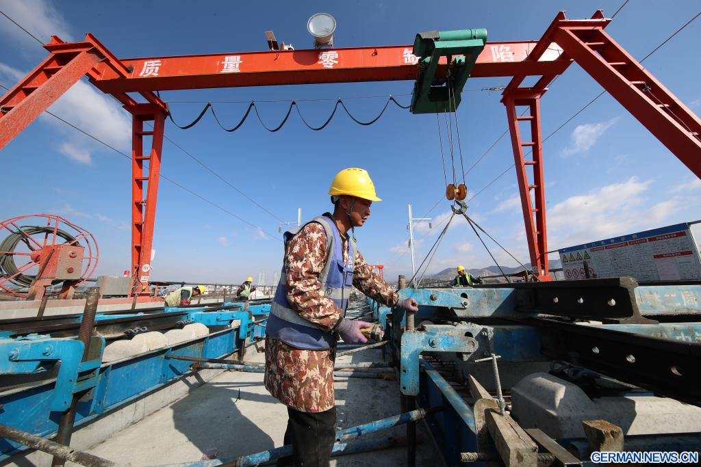 ZHAOTONG, 7. Dezember 2025 (Xinhuanet) -- Die Luftaufnahme einer Drohne vom 7. Dezember 2025 zeigt eine Baustelle der Hochgeschwindigkeitsstrecke Chongqing-Kunming in Zhaotong in der südwestchinesischen Provinz Yunnan. (Foto von Zhang Guangyu/Xinhua)
