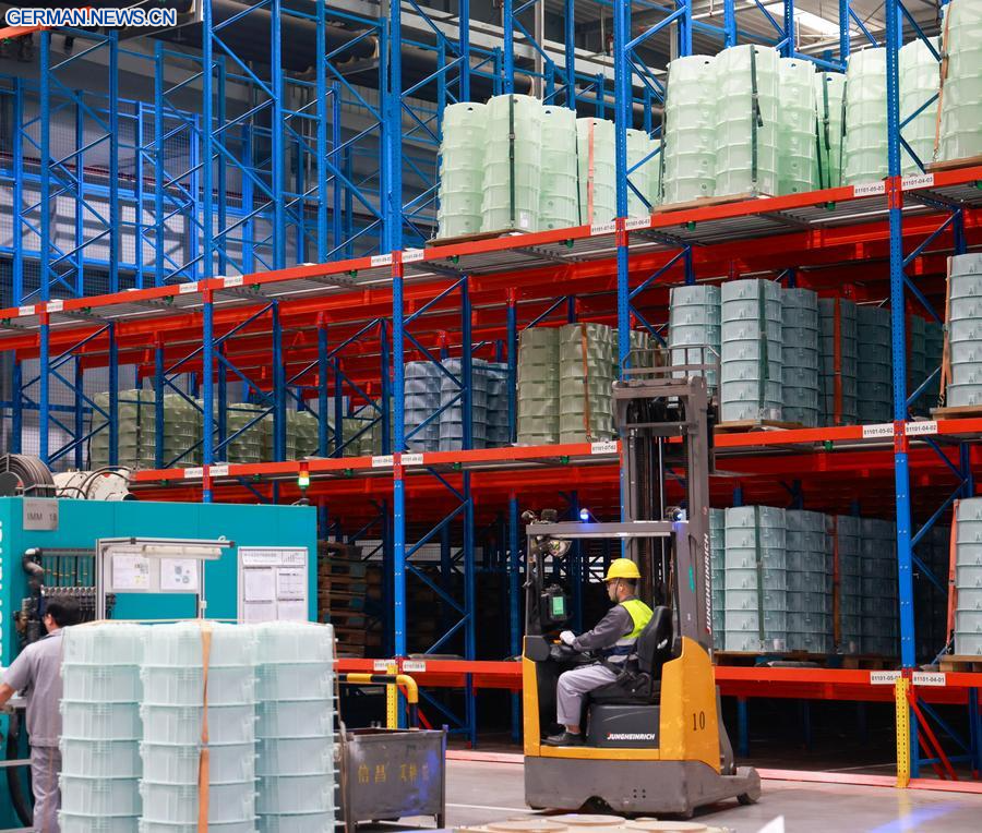 Das Foto zeigt einen Blick in eine Fabrik der BSH Home Appliances Holding (China) Co., Ltd. in Nanjing, der Hauptstadt der Provinz Jiangsu in Ostchina, 19. September 2025. (Xinhua/Liu Jiaqi)