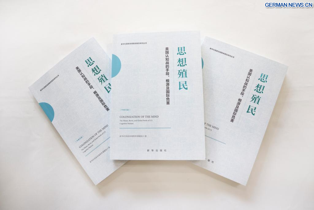 BEIJING, 23. Dezember 2025 (Xinhuanet) -- Das am 22. Dezember 2025 aufgenommene Foto zeigt Exemplare eines Buches mit dem Titel „Kolonialisierung des Geistes“. Das Xinhua-Institut, ein Thinktank der Nachrichtenagentur Xinhua, stellte am Montag während der 36. akademischen Konferenz zum Thema Journalismus, die von der Nachrichtenagentur Xinhua veranstaltet wurde, ein neues Buch mit dem Titel „Kolonialisierung des Geistes“ in chinesischer und englischer Sprache vor. (Quelle: Xinhua/Yin Gang)