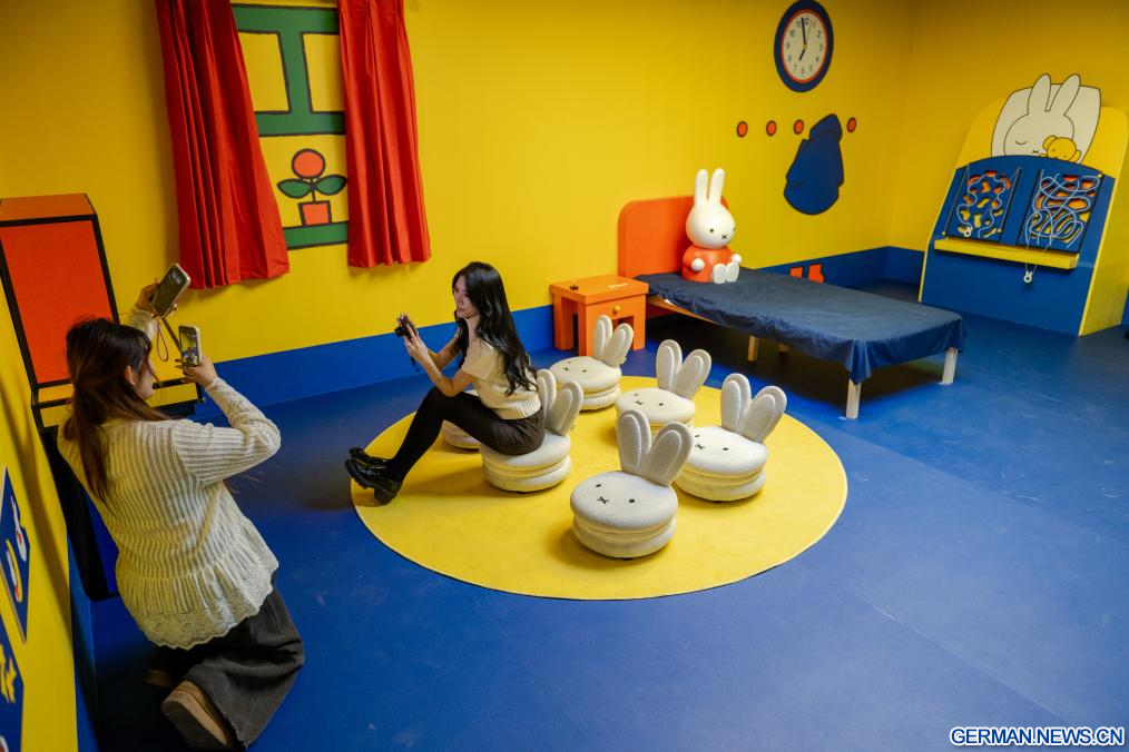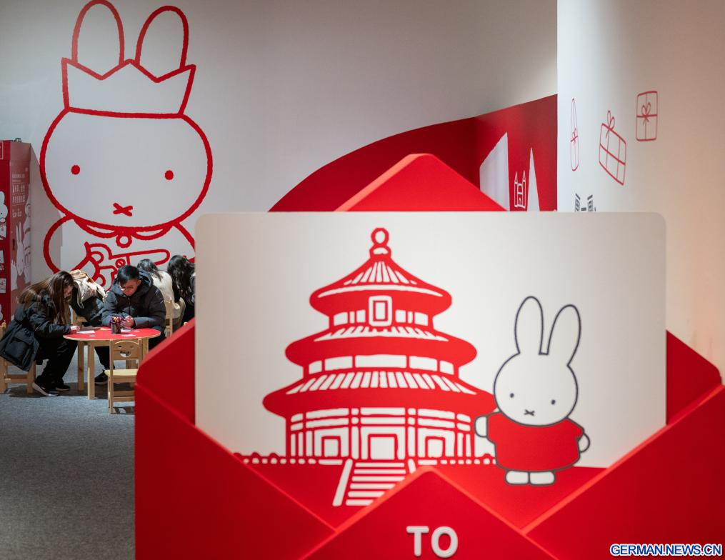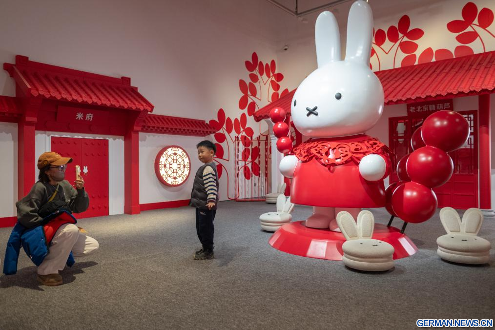 BEIJING, 24. Dezember 2025 (Xinhuanet) -- Menschen besuchen die Ausstellung „Miffy and Friends China Experience“ im Times Art Museum in Chinas Hauptstadt Beijing, 24. Dezember 2025. Miffy ist ein weltberühmtes Cartoon-Kaninchen, das vom niederländischen Künstler Dick Bruna geschaffen wurde. Die Ausstellung wurde am Mittwoch hier eröffnet und dauert bis zum 22. März 2026. (Quelle: Xinhua/Hu Jingwen)