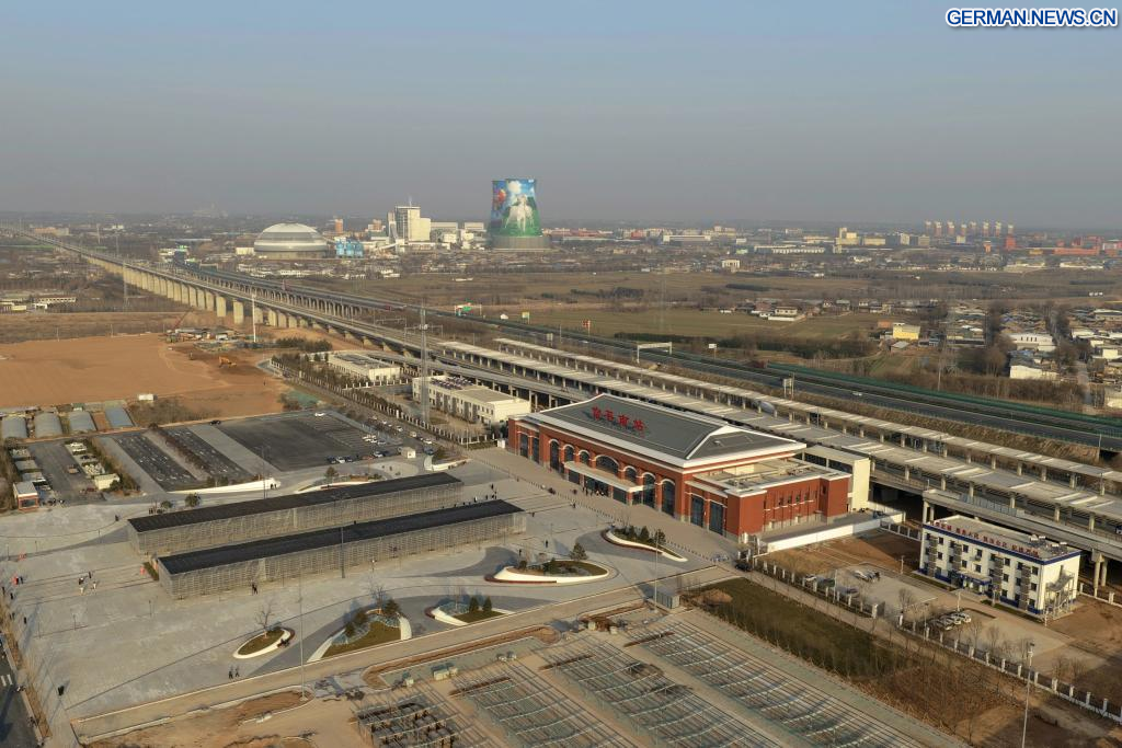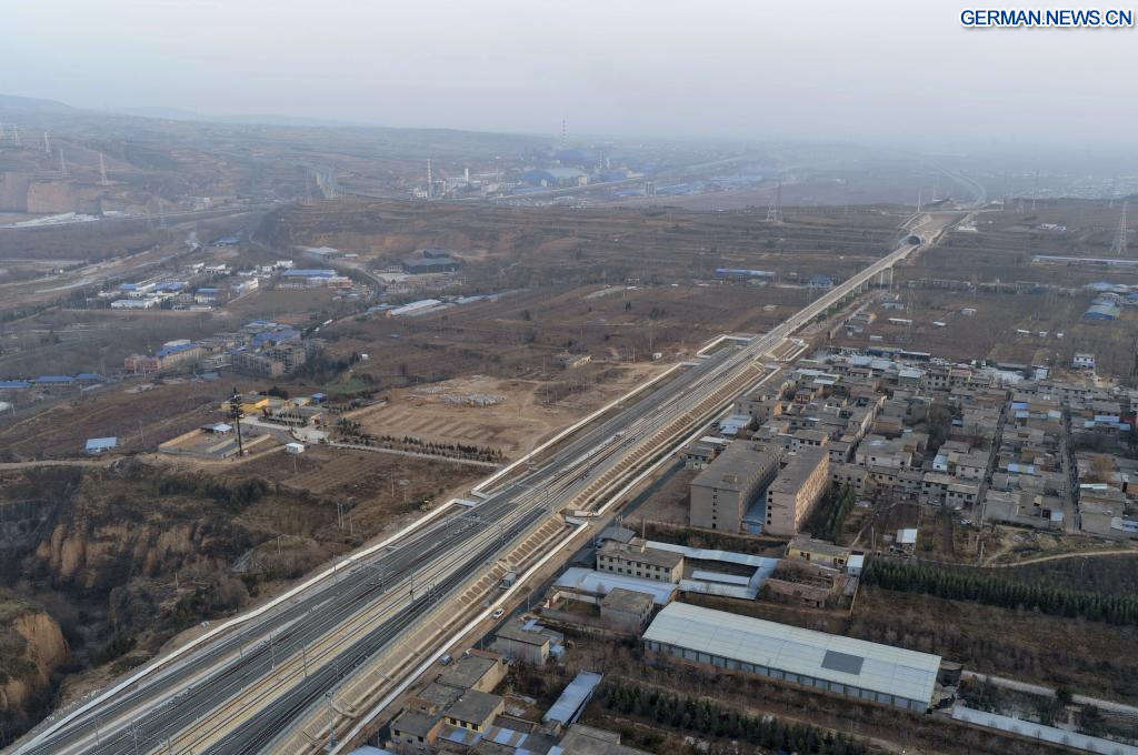 Sie wird die erste Hochgeschwindigkeitsbahnstrecke im alten revolutionären Basisgebiet im Norden von Shaanxi sein und der regionalen Entwicklung neue Impulse verleihen. (Quelle: Xinhua/Xing Guangli)