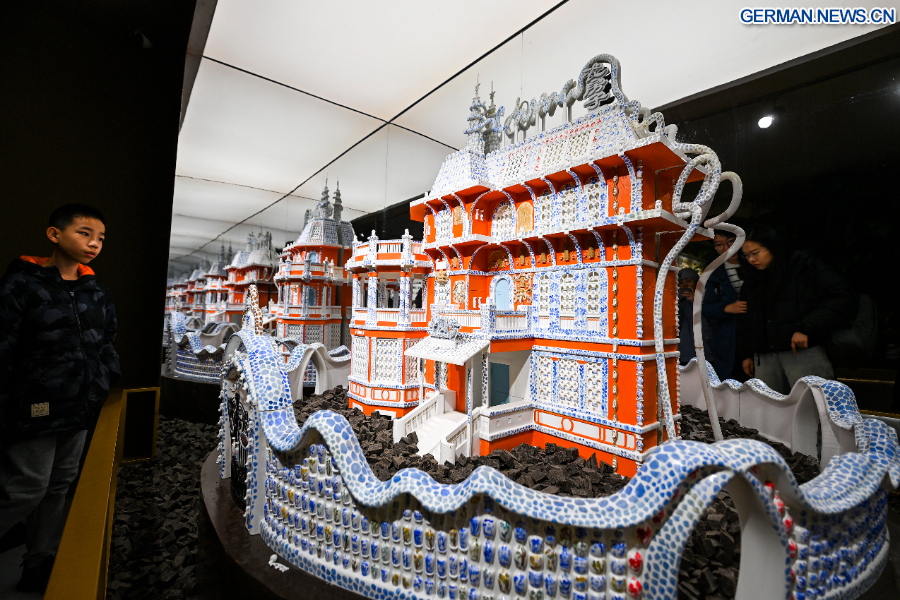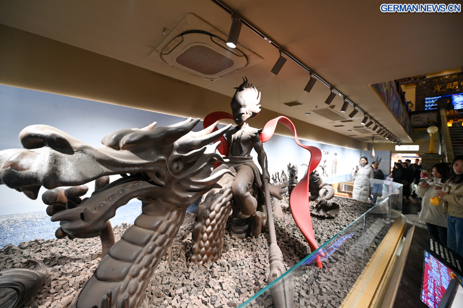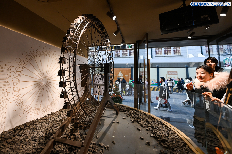 TIANJIN, 29. Dezember 2025 (Xinhua) -- Touristen besuchen ein Schokoladenmuseum im nordchinesischen Tianjin, 28. Dezember 2025. In Tianjin wurde ein Schokoladenmuseum offiziell für die Öffentlichkeit eröffnet. Das Museum zeigt mehr als 20 handgefertigte Schokoladenskulpturen, für deren Herstellung insgesamt fast 10 Tonnen Schokoladen verwendet wurden. (Xinhua/Zhao Zishuo)