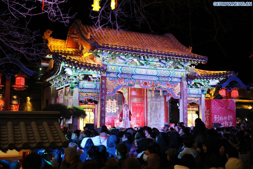 BEIJING, 1. Januar 2026 (Xinhuanet) -- Eine Aufführung findet während einer Neujahrsfeier in der antiken Gemeinde Yangliuqing in Tianjin, Nordchina, statt, 31. Dezember 2025. (Quelle: Xinhua/Li Ran)