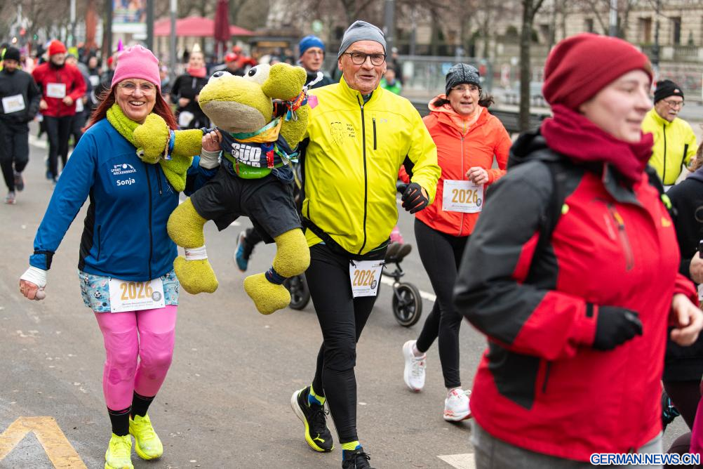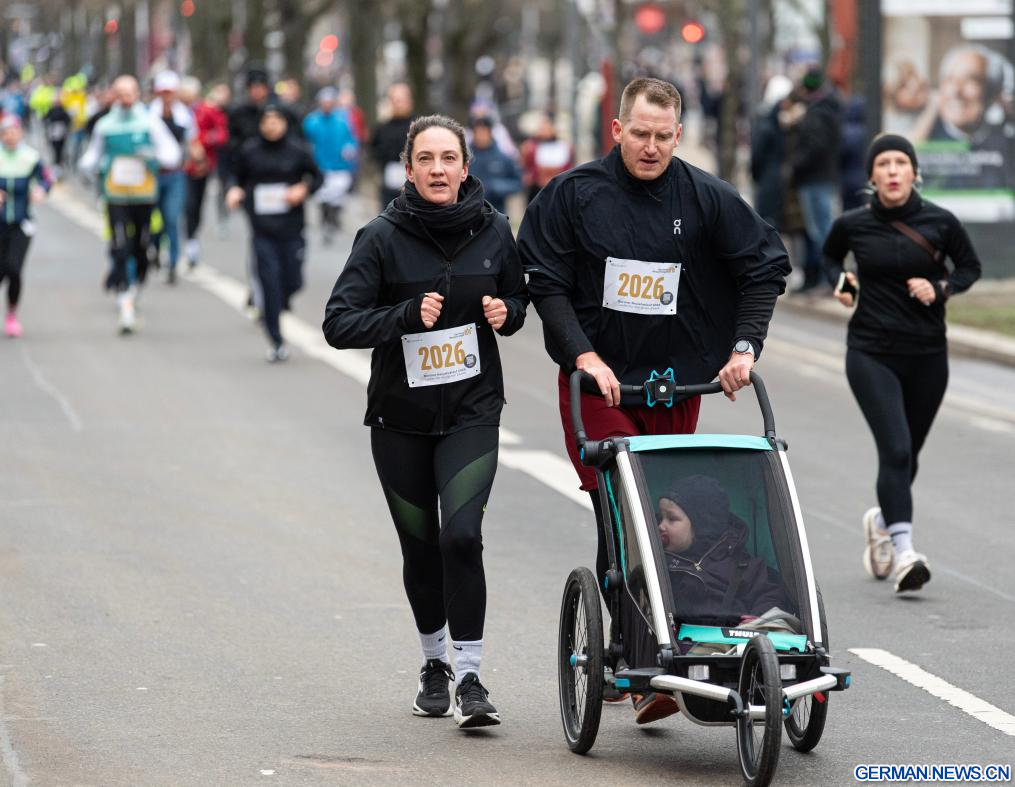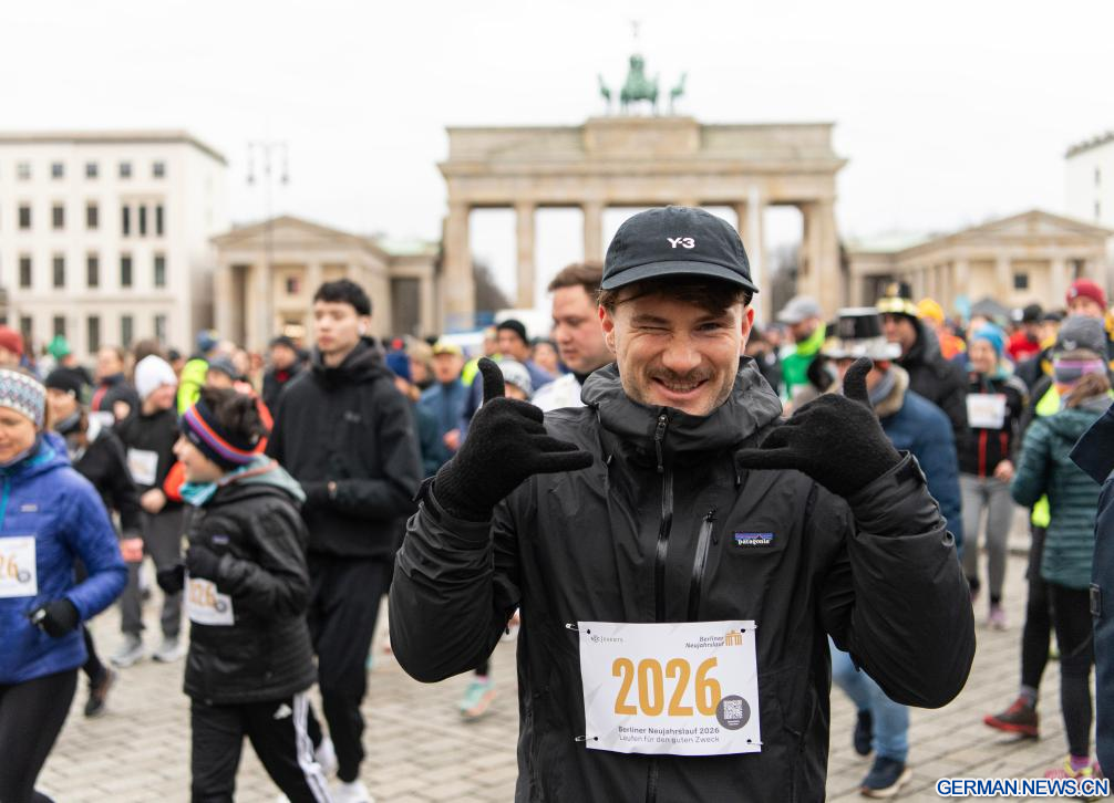 BERLIN, 1. Januar 2026 (Xinhuanet) -- Menschen nehmen am Neujahrslauf in Berlin, Deutschland, teil, 1. Januar 2026. (Quelle: Xinhua/Zhang Haofu)