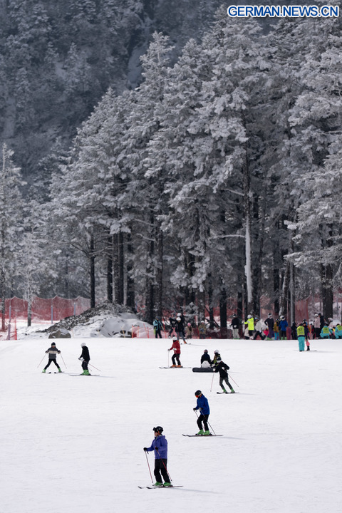 Sichuan zählt zu den weltweit reichsten Regionen für den Eis- und Schneetourismus in niedrigen Breitengraden. Durch die Nutzung seiner charakteristischen Landschaften, in denen sich schneebedeckte Berge mit milden Temperaturen vereinen, hat sich die Provinz zu einem beliebten Reiseziel für Touristen aus dem In- und Ausland entwickelt. (Xinhua/Jiang Hongjing)