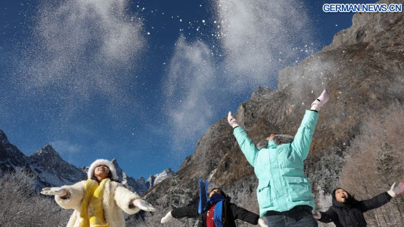 Sichuan zählt zu den weltweit reichsten Regionen für den Eis- und Schneetourismus in niedrigen Breitengraden. Durch die Nutzung seiner charakteristischen Landschaften, in denen sich schneebedeckte Berge mit milden Temperaturen vereinen, hat sich die Provinz zu einem beliebten Reiseziel für Touristen aus dem In- und Ausland entwickelt. (Xinhua/Liu Kun)