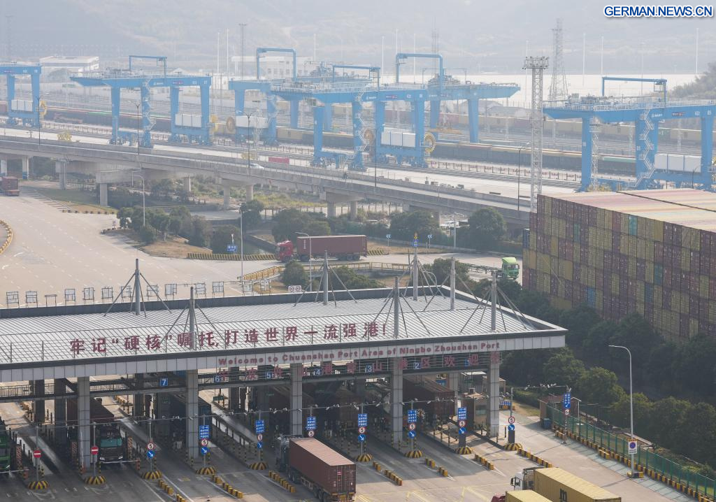 Als wichtiger Knotenpunkt der maritimen Seidenstraße des 21. Jahrhunderts hat der Hafen Ningbo-Zhoushan seine globale Reichweite kontinuierlich ausgebaut. Bis Ende 2025 bot der Hafen mehr als 300 Container-Schifffahrtsrouten an, die über 700 Häfen in mehr als 200 Ländern und Regionen verbanden. (Quelle: Xinhua/Huang Zongzhi)
