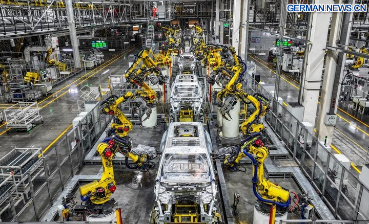 Die Drohnenaufnahme zeigt die automatisierte Produktion in der Seres Super Factory in der Liangjiang New Area in Chongqing im Südwesten Chinas, 19. September 2025. (Xinhua/Wang Quanchao)