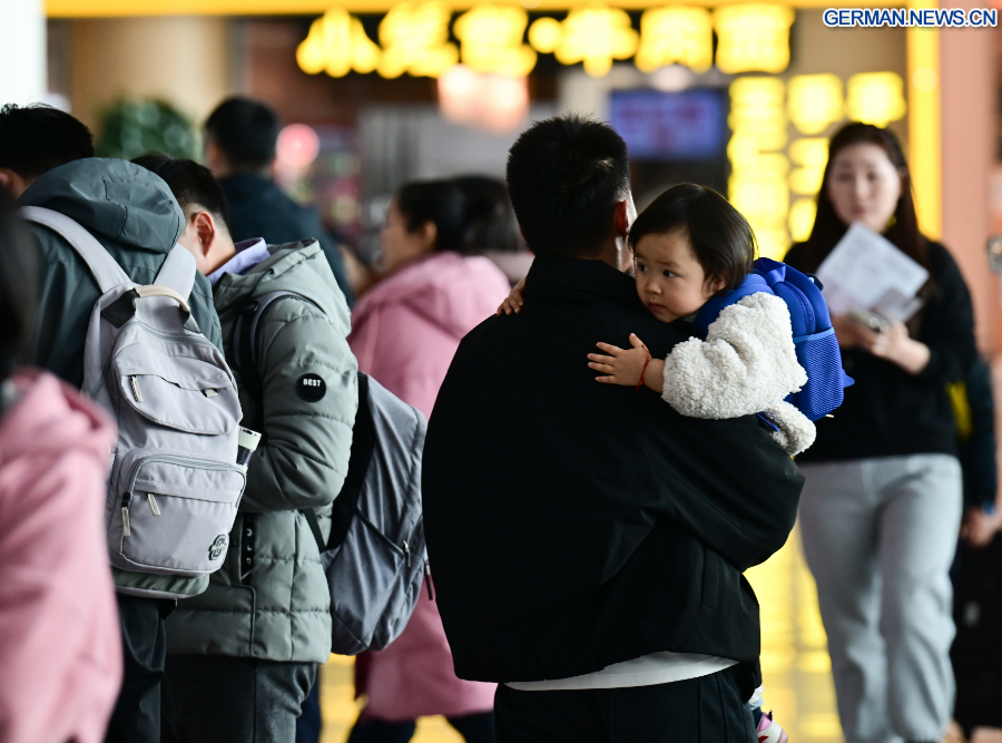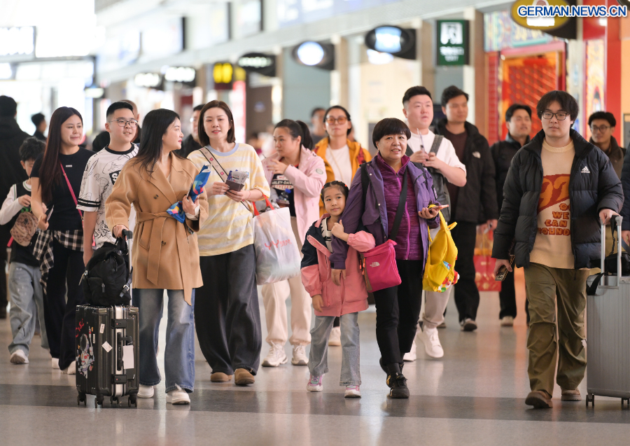 Während der diesjährigen Hauptreisezeit, die am 13. März endet, wird mit einem Passagieraufkommen von insgesamt 9,5 Milliarden gerechnet, was einen historischen Rekordwert darstellt. (Xinhua/Ju Huanzong)