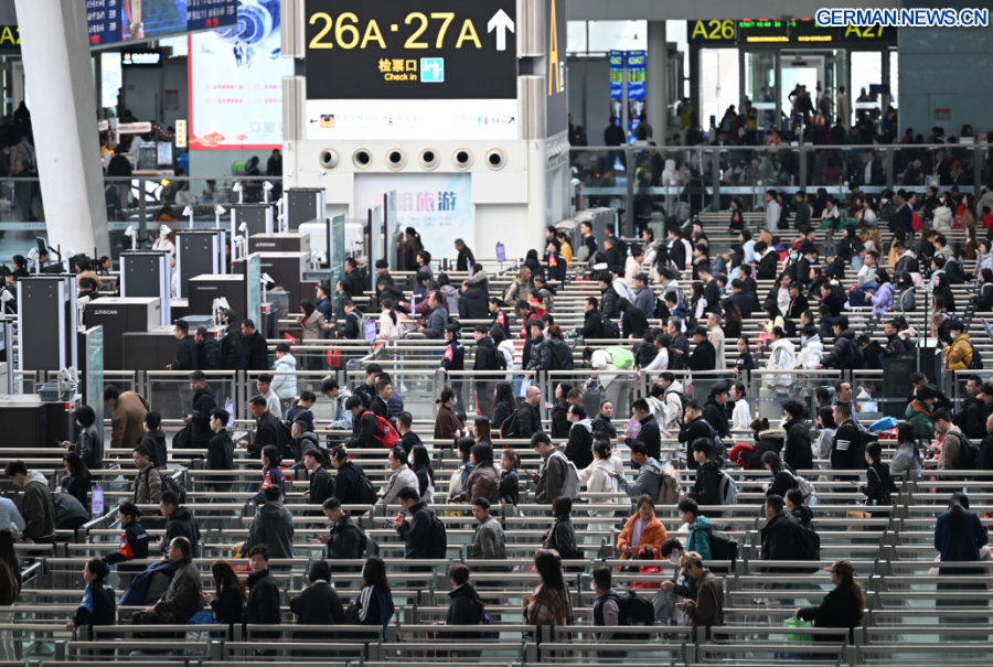 Während der diesjährigen Hauptreisezeit, die am 13. März endet, wird mit einem Passagieraufkommen von insgesamt 9,5 Milliarden gerechnet, was einen historischen Rekordwert darstellt. (Xinhua/Wu Lu)