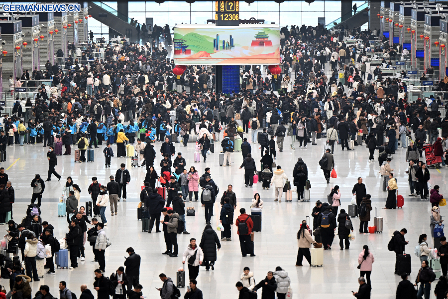 Während der diesjährigen Hauptreisezeit, die am 13. März endet, wird mit einem Passagieraufkommen von insgesamt 9,5 Milliarden gerechnet, was einen historischen Rekordwert darstellt. (Xinhua/Ju Huanzong)