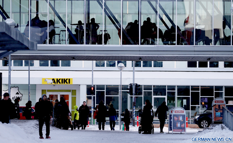 NUUK, 9. Februar 2026 (Xinhua) -- Das Foto zeigt Menschen in einem Einkaufszentrum in Nuuk in Grönland, einem autonomen Gebiet Dänemarks, 8. Februar 2026. (Xinhua/Li Ying)
