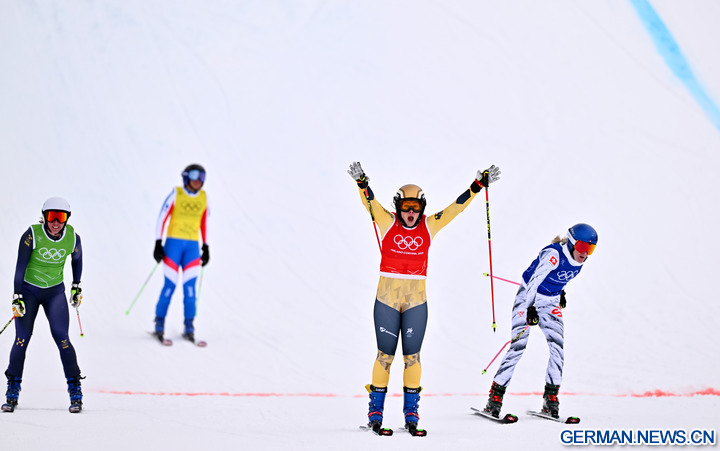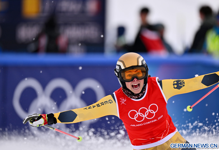 LIVIGNO, 21. Februar 2026 (Xinhua) -- Daniela Maier aus Deutschland feiert während des Finales im Skicross der Frauen im Freestyle-Ski bei den Olympischen Winterspielen Milano Cortina 2026 in Livigno in Italien, 20. Februar 2026. (Xinhua/Zhang Hongxiang)