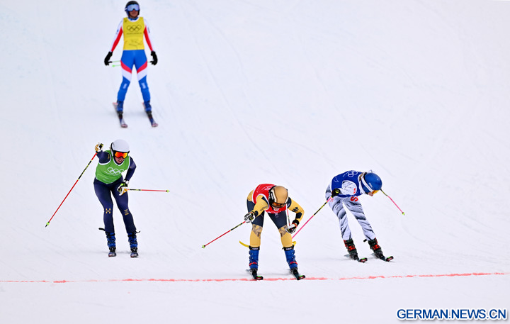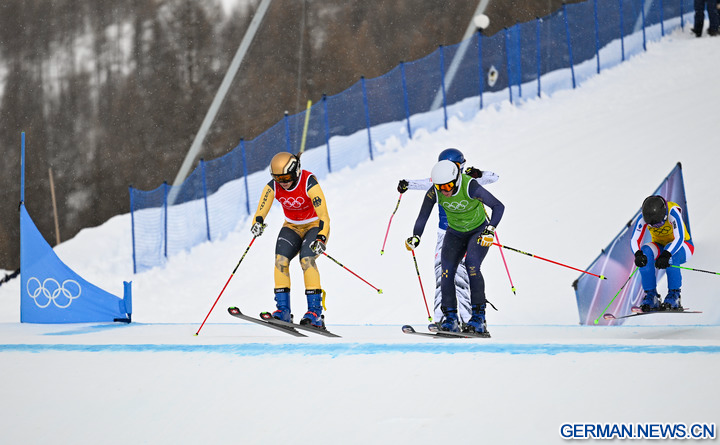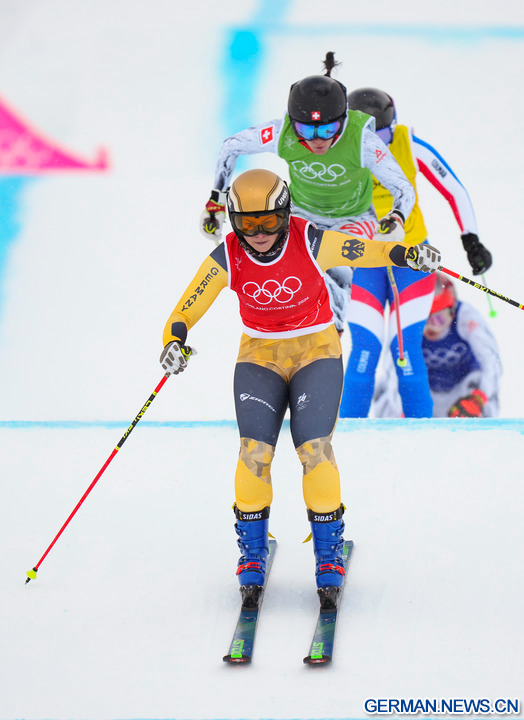 LIVIGNO, 21. Februar 2026 (Xinhua) -- Das Foto zeigt Daniela Maier (2. v. r.) aus Deutschland während des Finales im Skicross der Frauen im Freestyle-Ski bei den Olympischen Winterspielen Milano Cortina 2026 in Livigno in Italien, 20. Februar 2026. (Xinhua/Zhang Hongxiang)