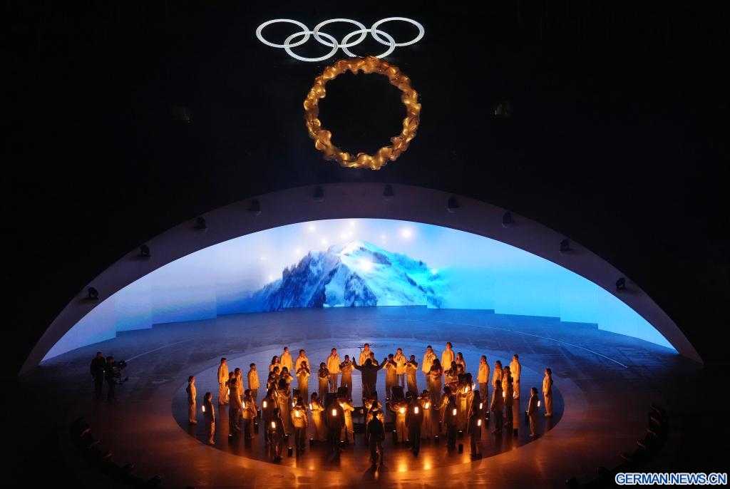 VERONA, 22. Februar 2026 (Xinhuanet) -- Das Foto vom 22. Februar 2026 zeigt die Abschlussfeier der Olympischen Winterspiele 2026 in Mailand-Cortina in der Verona Olympic Arena in Verona, Italien. (Quelle: Xinhua/Xue Yuge)