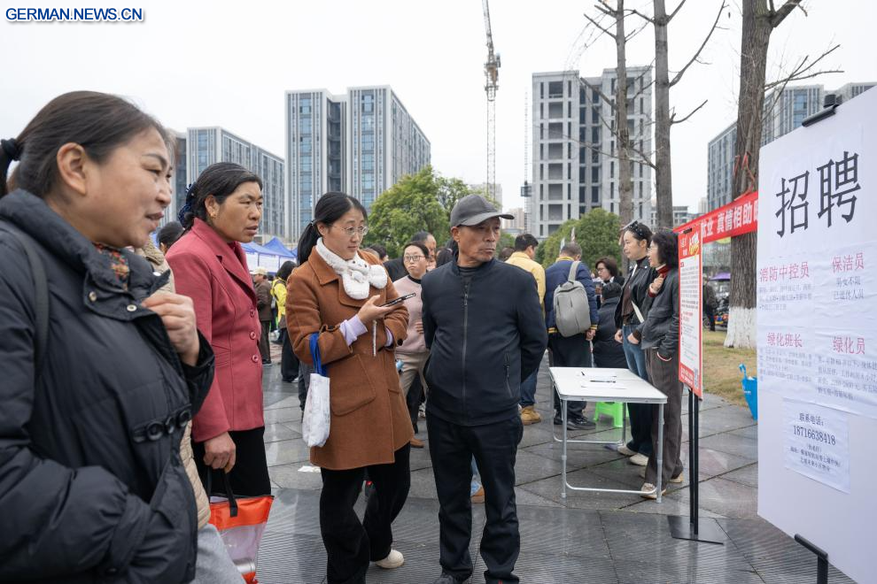 BEIJING, 27. Februar 2026 (Xinhuanet) -- Arbeitssuchende besuchen eine Jobmesse im Bezirk Fancheng in Xiangyang der zentralchinesischen Provinz Hubei, 26. Februar 2026. In jüngster Zeit wurden im ganzen Land verschiedene Arten von Jobmessen abgehalten, um Arbeitssuchenden Stellenangebote zu vermitteln. (Foto von Xie Yong/Xinhua)