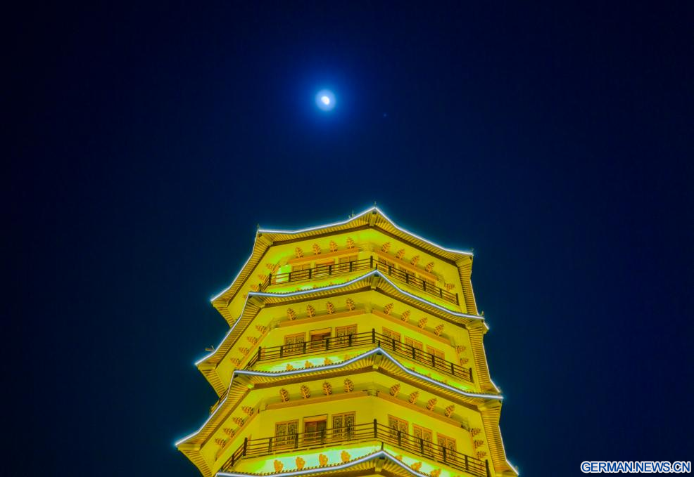 HARBIN, 27. Februar 2026 (Xinhuanet) -- Dieses am 27. Februar 2026 aufgenommene Foto zeigt den Planeten Jupiter neben dem Mond am Himmel über der Stadt Shuangyashan in der nordostchinesischen Provinz Heilongjiang. (Foto von Han Yang/Xinhua)