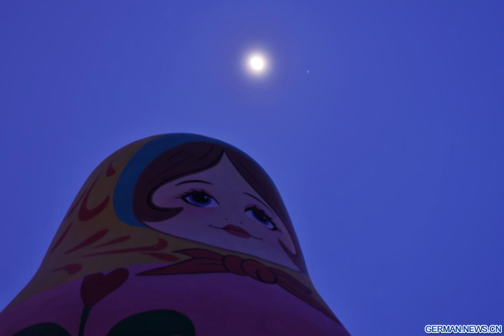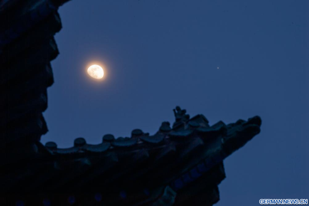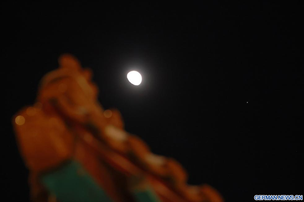 HARBIN, 27. Februar 2026 (Xinhuanet) -- Dieses am 27. Februar 2026 aufgenommene Foto zeigt den Planeten Jupiter neben dem Mond am Himmel über der Stadt Qiqihar in der nordostchinesischen Provinz Heilongjiang. (Foto von Wang Yonggang/Xinhua)
