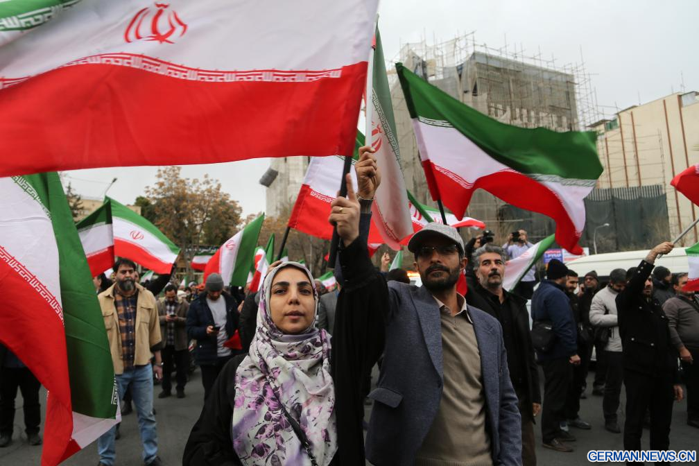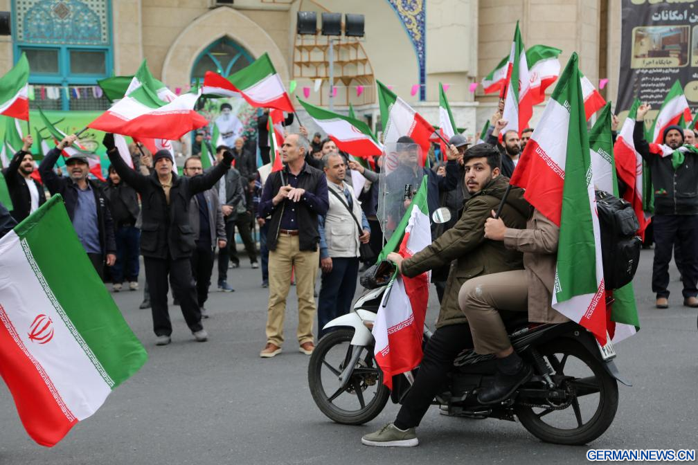 TEHERAN, 1. März 2026 (Xinhuanet) -- Menschen nehmen an einer Protestkundgebung gegen die Angriffe der USA und Israels auf den Iran in Teheran im Iran teil, 28. Februar 2026.