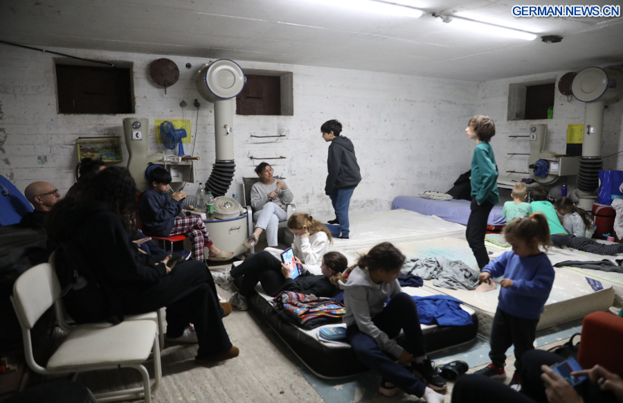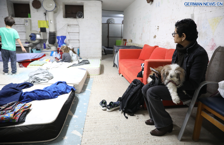 TEL AVIV, 1. März 2026 (Xinhua) -- Das Foto zeigt Anwohner in einem Schutzraum in Tel Aviv in Israel nach einem Luftalarm, 28. Februar 2026. Das Heimatschutzkommando der israelischen Streitkräfte hat Zivilschutzanweisungen erteilt, als in mehreren Gebieten des Landes Luftschutzsirenen ertönten, und Einwohner aufgefordert, Schutz zu suchen.
