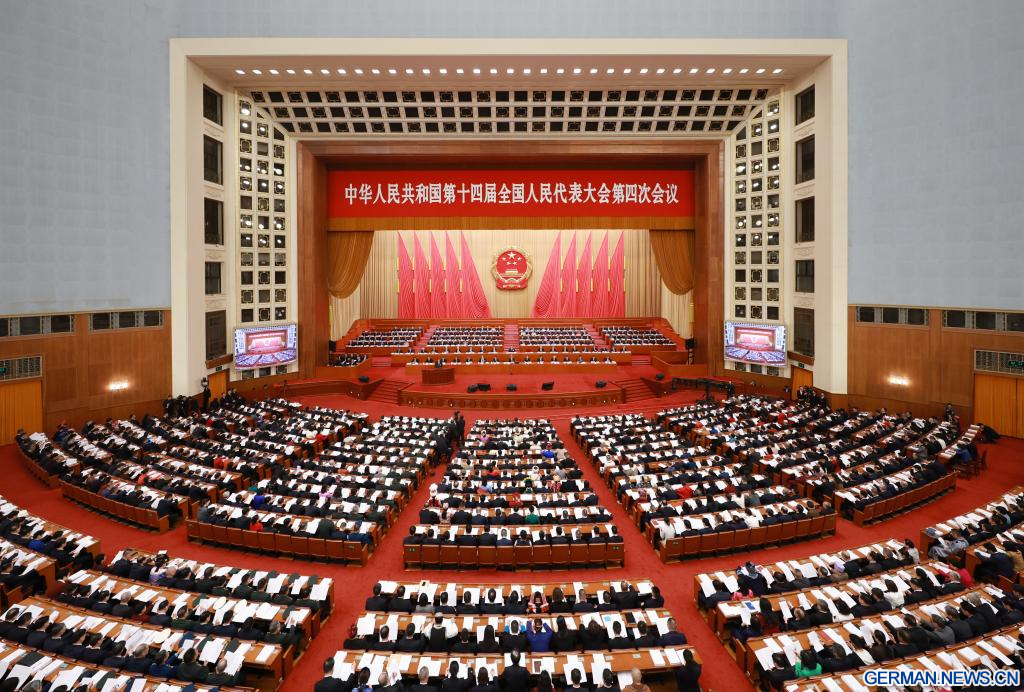 BEIJING, 5. März 2026 (Xinhuanet) -- Der 14. Nationale Volkskongress (NVK), Chinas oberste Legislative, hat am Donnerstagmorgen in der Großen Halle des Volkes in Beijing seine vierte Tagung eröffnet.