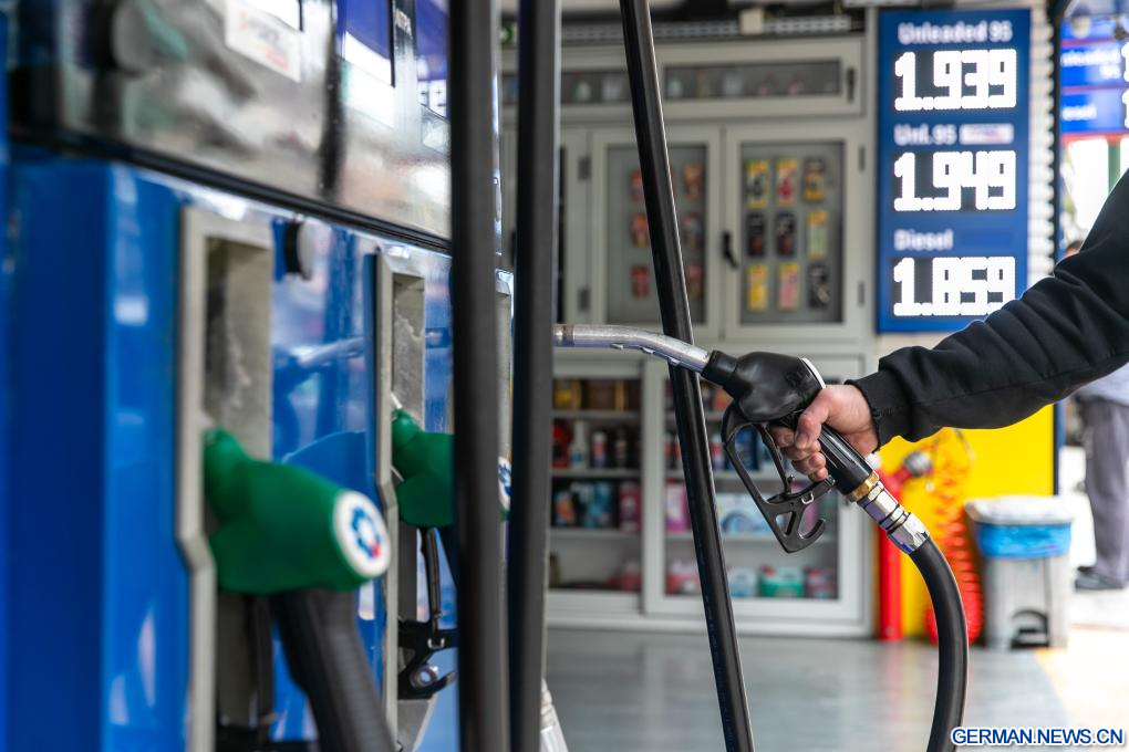 ATHEN, 17. März 2026 (Xinhuanet) -- Eine Person tankt an einer Tankstelle in Athen, Griechenland, 17. März 2026. Seit Beginn der militärischen Operationen der USA und des Israels gegen den Iran sind die Benzinpreise in Griechenland gestiegen. (Quelle: Xinhua/Marios Lolos)