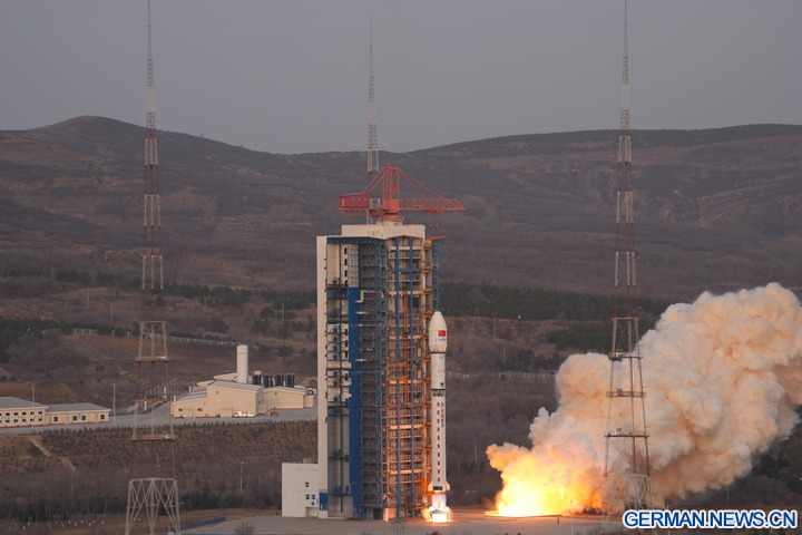 Die Rakete startete um 6:51 Uhr (Ortszeit Beijing) und brachte die beiden Satelliten „Siwei Gaojing-2 05“ und „Siwei Gaojing-2 06“ in ihre vorgesehene Umlaufbahn. (Foto von Wang Yapeng/Xinhua)
