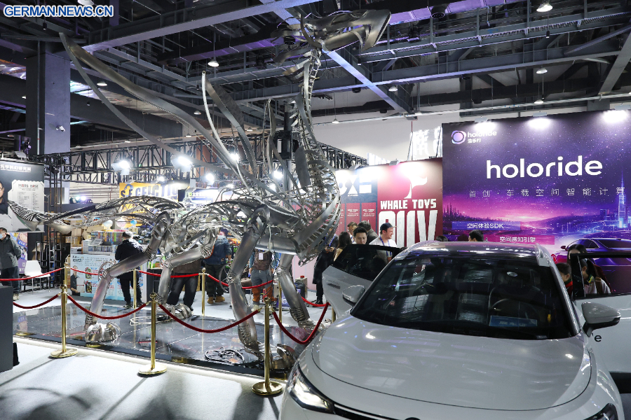 BEIJING, 28. März 2026 (Xinhua) -- Das Foto zeigt Besucher auf der International Sci-Fi and Future Tech Expo Beijing 2026 in der chinesischen Hauptstadt Beijing, 27. März 2026. (Xinhua/Zhang Chenlin)