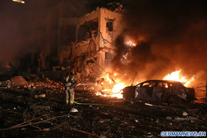 BEIJING, 30. März 2026 (Xinhua) -- Das Foto zeigt eine Explosion während iranischer Raketenangriffe auf die Innenstadt von Tel Aviv in Israel, 28. Februar 2026. Der Konflikt zwischen den USA, Israel und dem Iran trat am Sonntag in seinen 30. Tag. Der Nahe Osten ist erneut in einen Kreislauf eskalierender Gewalt geraten. Die Zahl der zivilen Opfer steigt, die regionalen Spannungen verschärfen sich und das Risiko eines größeren Krieges wächst von Tag zu Tag. (Xinhua/Chen Junqing)