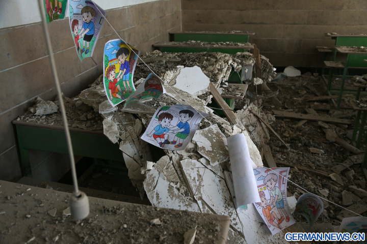 BEIJING, 30. März 2026 (Xinhua) -- Das Foto zeigt die Trümmer in einem Klassenzimmer der Shahid-Mahallati-Schule in Teheran im Iran, 3. März 2026. Der Konflikt zwischen den USA, Israel und dem Iran trat am Sonntag in seinen 30. Tag. Der Nahe Osten ist erneut in einen Kreislauf eskalierender Gewalt geraten. Die Zahl der zivilen Opfer steigt, die regionalen Spannungen verschärfen sich und das Risiko eines größeren Krieges wächst von Tag zu Tag. (Xinhua/Shadati)