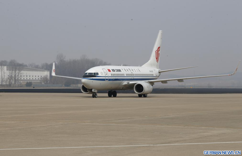 PJÖNGJANG, 30 März 2026 (Xinhuanet) -- Ein Passagierflugzeug der Air China aus Beijing landet am internationalen Flughafen Sunan in Pjöngjang, der Demokratischen Volksrepublik Korea (DVRK), 30. März 2026. Ein Passagierflugzeug der Air China aus Beijing landete am Montagmorgen in Pjöngjang, womit der Passagierflugverkehr der chinesischen Fluggesellschaft zwischen den Hauptstädten Chinas und der DVRK offiziell wieder aufgenommen wurde. (Quelle: Xinhua/Wang Chao)