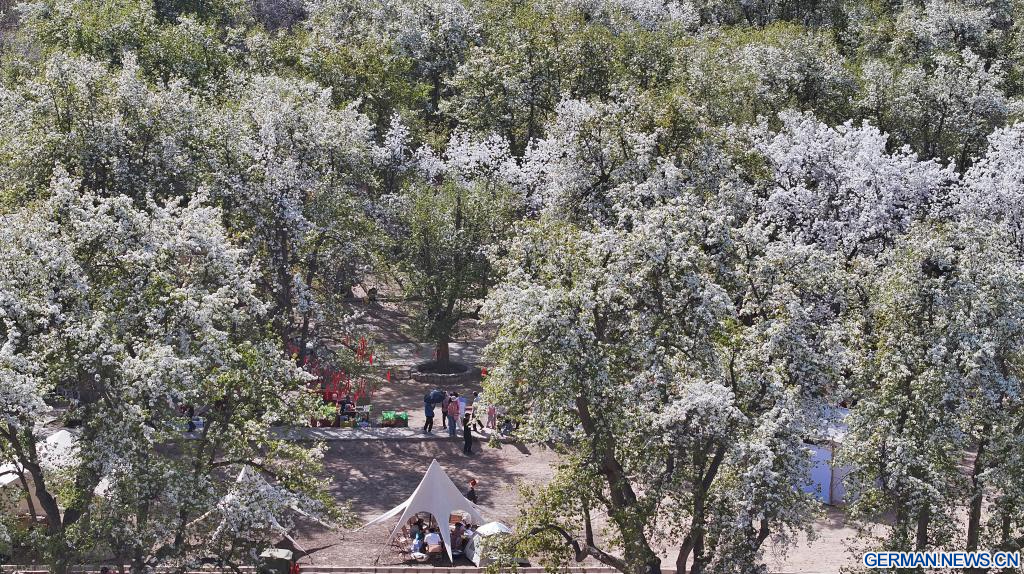 Jedes Jahr im April veranstaltet die lokale Regierung ein „Birnenblütenfest“, um den Tourismus des Dorfes zu fördern, indem sie den Besuchern die einzigartige Landschaft und Kultur präsentiert. (Quelle: Xinhua/Wang Peng)
