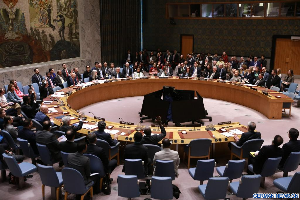 VEREINTE NATIONEN, 7. April 2026 (Xinhuanet) -- Vertreter stimmen über einen Resolutionsentwurf des UN-Sicherheitsrats zur Straße von Hormus im UN-Hauptquartier in New York ab, 7. April 2026. Der UN-Sicherheitsrat scheiterte am Dienstag bei der Verabschiedung eines Resolutionsentwurfs, der Staaten, die an der Nutzung kommerzieller Seewege in der Straße von Hormus interessiert sind, „nachdrücklich dazu ermutigt“, Maßnahmen mit defensivem Charakter zu koordinieren, um zur Gewährleistung der Sicherheit und des Schutzes der Schifffahrt durch die Straße von Hormus beizutragen, unter anderem durch die Begleitung von Handels- und Frachtschiffen. (Quelle: Xinhua/Xie E)
