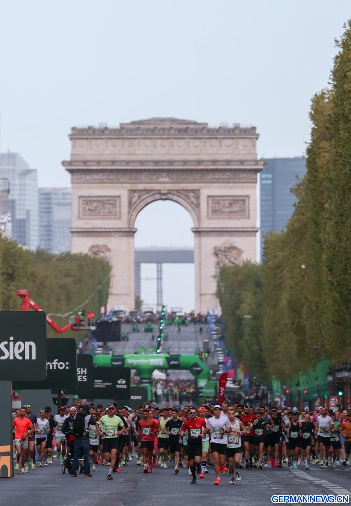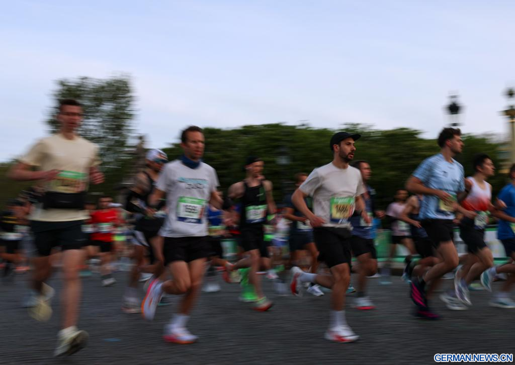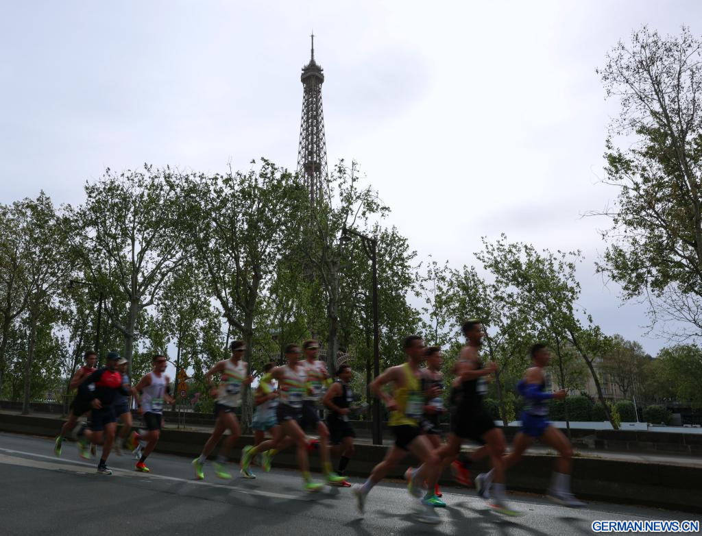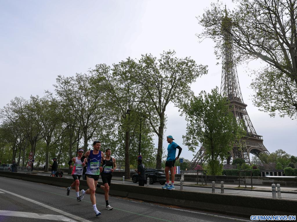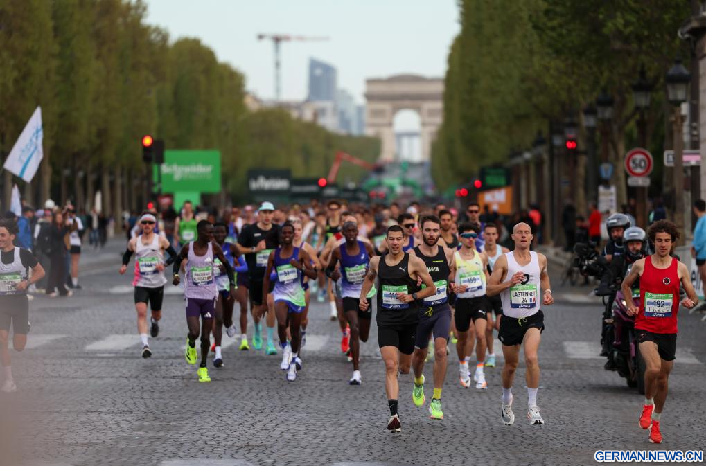 PARIS, 12. April 2026 (Xinhuanet) -- Teilnehmende laufen während des Paris-Marathons 2026 in Paris, Frankreich, 12. April 2026. (Quelle: Xinhua/Wu Huiwo)