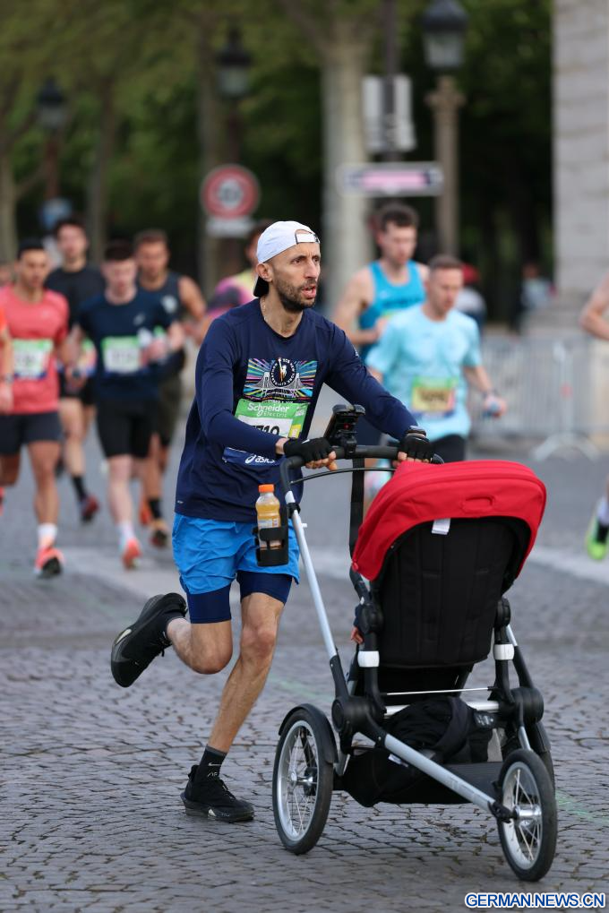 PARIS, 12. April 2026 (Xinhuanet) -- Ein Teilnehmer läuft während des Paris-Marathons 2026 in Paris, Frankreich, 12. April 2026. (Quelle: Xinhua/Wu Huiwo)